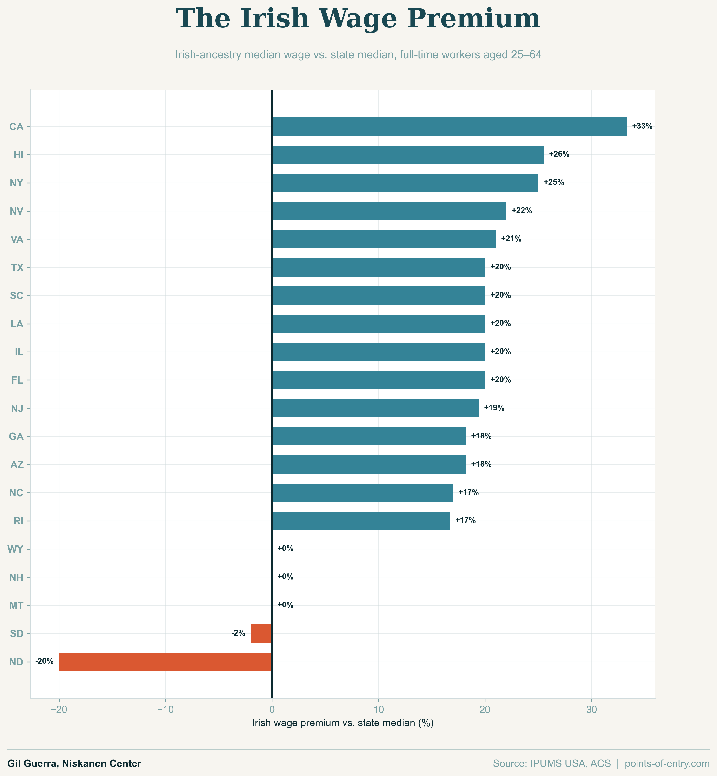 In nearly every state, Irish Americans earned more than the median state wage. The only exceptions were the Dakotas, where self-identified Irish Americans earned less.